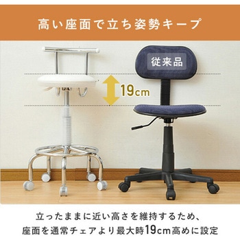 座面が高めで立ち姿勢に近い状態で作業可能。