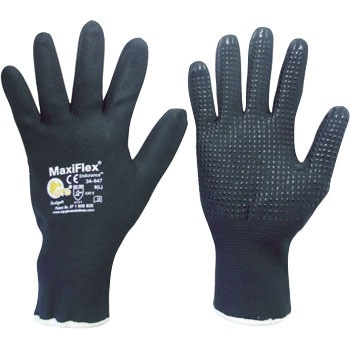 15ゲージ編、EN388規格:耐摩耗レベル4・耐切創レベル1・耐引裂レベル3・耐突刺レベル1、コーティング:全体(裾部分まで)・ドット付