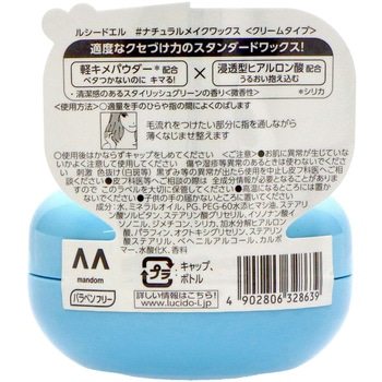 ベタつかずキマる「軽キメ」ワックス!パウダー整髪成分&浸透型ヒアルロン酸配合で、軽やかなのにしっかりキマるヘアワックス。サラサラなのに整髪力がある軽キメパウダー配合で、ベタ付かないのにスタイルがしっかりキマる。浸透型ヒアルロン酸が髪内部で水分を抱え込み、潤いが長時間続きやわらかな質感へ。防腐剤フリー。