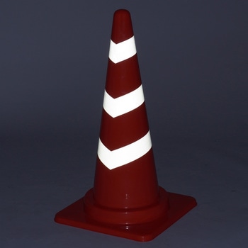 夜間などに車のライトに反射しますので、反射材なしのコーンと比較して視認性が高くなります。