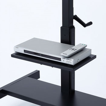 32~52型までのディスプレイの搭載が可能です。専用ハンドルにて、ディプレイ位置を上下昇降させることができます。ブラケット中心位置が1400mm~1700mmで可動します。VESA取付け100×100、200×100、200×200、300×300、400×300、400×400に対応しています。DVDプレイヤーなどの機器を設置できる棚板が1枚標準装備です。取り付け位置はディスプレイの大きさに合わせて3段階位置変更ができます。キャスターは直径100mmで、前方2個は車輪と車軸ロック付きです。ディスプレイを設置する際には必ず3人以上の大人の方が行ってください。