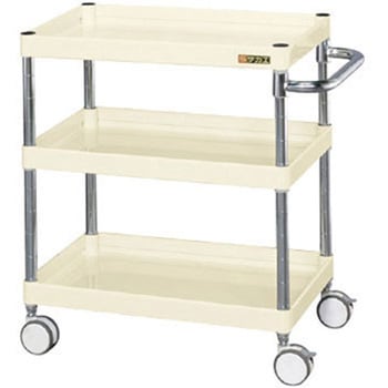 堅牢・安全・美観三拍子揃った新しいワゴンです。ダブルテーパー加工。皿型、フラット型どちらのタイプも組替えできます。棚板は50mmピッチで段替え可能。双輪エラストマーキャスターのため、美観、強度に優れています。キャスターは回転、旋回も止めるダブルストッパー。ストッパーを踏むだけで車輪、車軸(キャスター方向)をしっかり止めます。