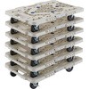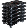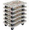 メッシュ構造の採用で、従来品よりさらに軽量で移動が簡単です。縦・横方向に連結が可能です。(横連結はオール自在キャスター仕様、オール自在ストッパー付キャスター仕様のみ)スタッキング可能です。荷台は堅牢なメッシュリブ構造です。薬品や溶剤にも侵されにくく耐久性に優れています。台上に滑り止め用ゴムが4ヵ所ついています。エラストマー樹脂車輪の採用でタイヤ痕がつくのを軽減します。ルートバンMP-600用コーナーストッパーの取り付けが可能です。(MPK-600シリーズ)
