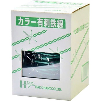 緑色の樹脂で被覆した針金にトゲ状の針金を取り付けてた鉄線。とげの部分はアルミ製です。