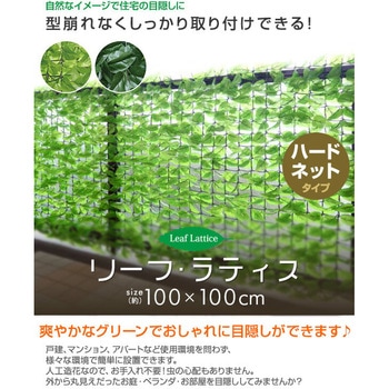 自然なイメージで住宅の目隠しに便利リーフのカラーは「ライトグリーン」「フォレストグリーン」の2種類取付ネットはバルコニーやフェンスなどの直線的な場所の目隠しに適したハードネットタイプ取付は付属の結束バンドでワンタッチで簡単設置設置場所に合わせてネットをカットして使用することも可能人工造花のためお手入れ不要で虫の心配もありませんフェイクリーフなので育てる手間要らず型崩れなく、しっかりと取り付け可能結束バンド10本付き