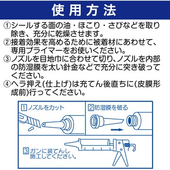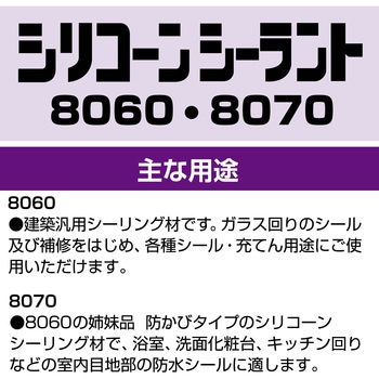 防カビタイプのシリコーンシーリング材で、脱オキシムタイプです。施工時はペースト状ですが、空気中の湿気に触れると弾性体に硬化し、接着・シーリング効果を発揮します。耐候性、耐熱性、耐寒性、耐水性に優れ、太陽光・オゾン・風雪・海水や温度変化による影響を受けにくいです。一成分形でカートリッジから押し出しやすく、垂れが少ないため施工が容易です。一般に5℃~35℃の範囲で作業ができます。光沢のある色調で、広いカラーバリエーションがあります。