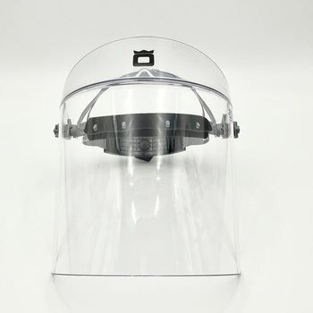 上面ガードの付いたタイプです。シールド上部にツバが付いていますので、シールド面が床に直接触れず傷が付きにくいです。ラチェット式ですので、位置やサイズの調整が可能です。