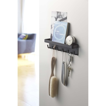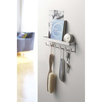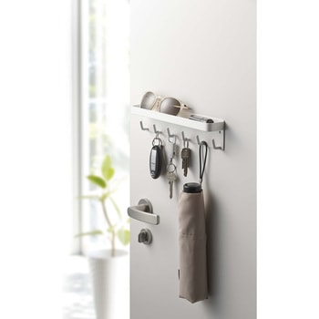 玄関先の便利収納アイテム!鍵掛け&小物入れスチール製の玄関扉に磁石で簡単に取り付けキーフック&トレー。玄関先での収納に忘れず便利。トレイに印鑑やペンを置いておけば、荷受時のサインがスムーズに。折りたたみ傘やサングラスを置いておくのにも。木ネジ付きで、マグネットでつかない壁にも取り付け、 ディスプレイ棚として見せる収納に。