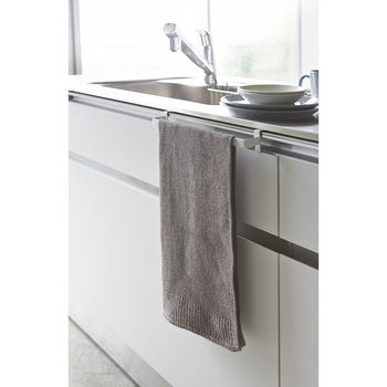 シンプルで美しいデザインの白いキッチン用品シリーズ『Plate』シンプル&モダンな形のスタイリッシュなキッチン収納小物です。フック部を扉の上部に引っ掛けるだけの簡単取り付け。 付属品:緩衝材×4個レールハンドルタイプの扉にも取り付け可能。【取り付け可能なドア】扉の幅:本商品の幅約30cm以上(扉のハンドル部を含まず)扉の厚さ:約1.4cm~2cmまで 扉と上部との隙間:約3mm以上が必要です。ガラス戸へのご使用はお避けください。