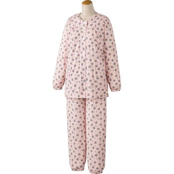38728 介護用フルオープンつなぎパジャマピンク小紋柄L