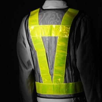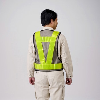 夜間の警備や作業時に車のライトなどに反射し、自分の位置を知らせてくれる安全のためのベストです。