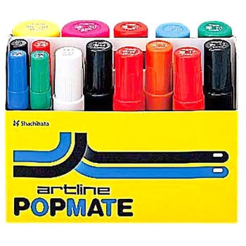 重ね描きもキレイなPOP用マーカー。耐光性に優れた水性顔料系インキを採用。インキは、ポスターカラーのような色鮮やかでイヤなニオイのない水性顔料系。にじまず、裏うつりもほとんどありません。乾いた後は重ね描きもでき、POP広告づくりのさまざまな表現が可能です。また、ガラス、金属、木、布、陶器などにもきれいに筆記できます。