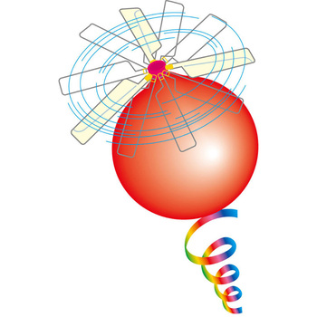 くるくるまわって飛んでいく。ぶんぶんまわって楽しいよ!風船から出る空気によってプロペラが回って飛んでいきます。音が出ながら飛んでいくので、とっても楽しく遊べます。