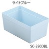 3色のカラーバリエーションで、色分けして効率的に収納物を管理できます。積み重ねできますので保管時も場所を取りません。アSC-140はトレー内を8分割、SC-280は4分割できます。