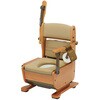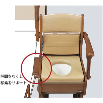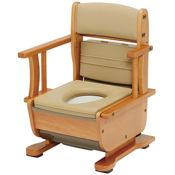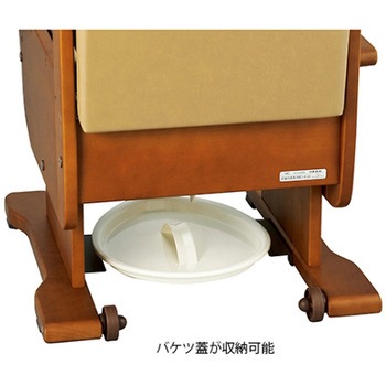 コンパクト機能満載の家具調トイレ。 座面の角度調節も可能。移動用の車輪付き。安心の二重バケツ。