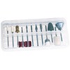研磨ディスク(サファイア)、ストーンポイント(2種)、サンドペーパーバンド用マンドレール、サファイアポイント(3種)、ダイヤモンドポイント(3種)、クリーニング用ブラシバー、フェルト製ポリッシャー、サンドペーパーバンド中×4個、専用ケース