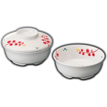 温冷配膳車対応の機能的な蓋付シリーズ。目に鮮やかなルビーレッドの色柄は、食器の視認性にも配慮しています。