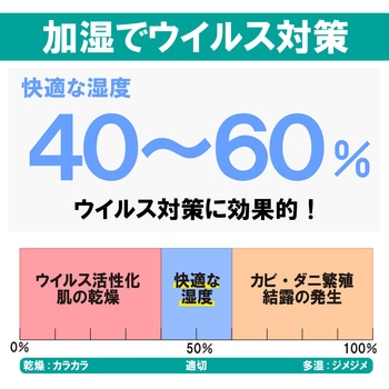 動作音が静かなので、オフィスでのご使用にも最適です。湿度40~60%が、ウイルス対策に効果的です。