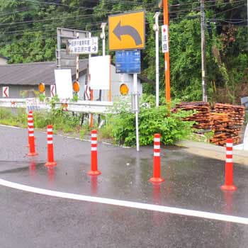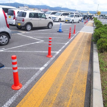 ポリウレタンを使用しておりますので、復元力が大きく、車体に傷をつきにくい丸型。道路や駐車場などで使用されている視線誘導標です。
