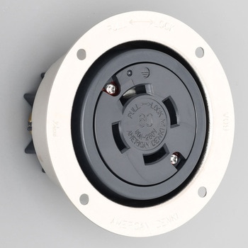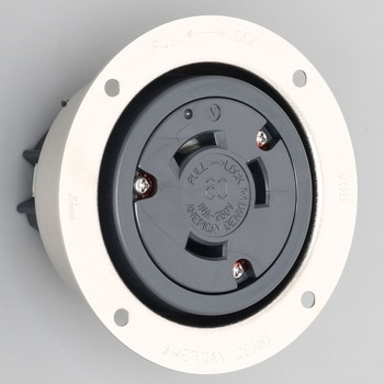 壁面内などの表面へフラットに取付可能な、高容量の電源を供給するための器具です。ボディ材質は、耐熱性・耐トラッキング性などを保有し、有害物質を含まない難燃(UL94 V-0)仕様のナイロン樹脂を採用しました。黄銅製のフランジケースには、耐蝕性に優れるニッケルめっき梨地仕上げを施しました。電線接続は、端子ねじ(ダブルセムス)の締め付けによる「圧着端子式」が可能です。