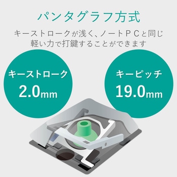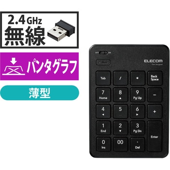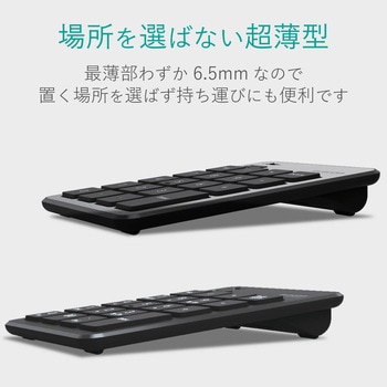最薄部わずか6.5mmの薄型設計。 挿すだけで簡単につながるワイヤレスタイプで、しっかりした打ち心地のパンタグラフ方式を採用した無線薄型テンキーパッド。