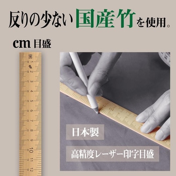 読み間違いしにくい階段状目盛です。反りの少ない国産竹を使用です。精度の高いレーザー印字目盛です。