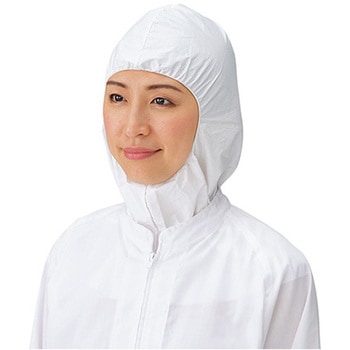 肩までの長さの使い捨てフードです。毛髪等の脱落を効果的に防ぎます。顔回りは伸縮可能です。