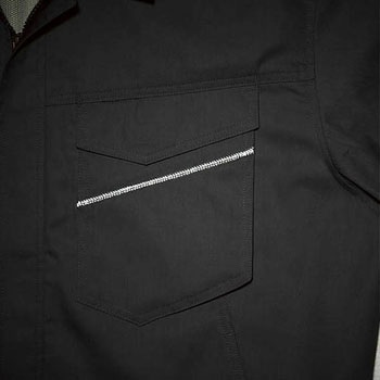背メッシュ・背ネーム、内ポケット(メッシュ仕様)、脇シャーリング、再帰反射材使用(胸ポケット)、ノーフォークメッシュ仕様、袖ペン差し付