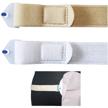 見やすい色付きのフックで、プレートやパウチに付いているタブに簡単に付けられます。両端でサイズ調節ができ、張力を均一にすることができます。バックル不使用なので、就寝時などでも違和感なく使用できます。