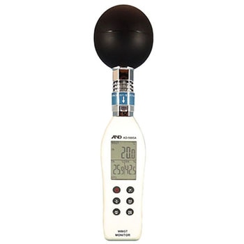 直径75mmの全球形石川式黒球により、安定した測定が可能。熱中症指数(WBGT)、温度(TA)、湿度(RH)、黒球温度(TG)測定項目|温度(TA)、湿度(RH)、黒球温度(TG)WBGT指数の表示範囲0~50℃(最小表示0.1℃)