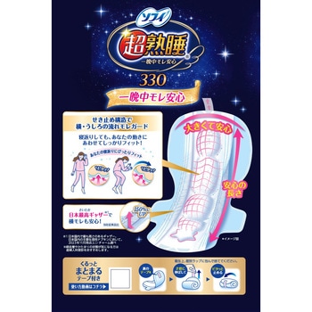 横・うしろの流れモレをガード、寝返りモレ0へ●せき止め構造で横・うしろの流れモレをガード。●寝返りしても、動きにあわせてしっかりフィット。●日本最高さいたかギャザー※1で横モレも安心。●捨てる時に便利な、くるっとまとまるテープ付き※2。<以下注釈>※1日本国内で最も高さのあるギャザー。日本国内の主要生理用ナプキンにおいて 2023年11月時点ユニ・チャーム調べ。※2衛生上、個別ラップに包んで捨ててください。医薬部外品