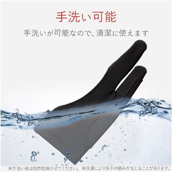 タッチペンやスタイラスでタブレットに絵を描く際の手と画面との摩擦を軽減し、グローブの画面接触部分の非通電パッドが手による誤操作を防止するタブレット、ペンタブレット用誤操作防止2本指グローブです。