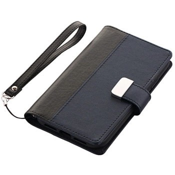 艶やかで上品な2トーンのPUレザーと、マグネット式の金属フックで高級感を演出/大容量カード収納(5枚)/動画視聴に最適なスタンド機能//耐衝撃TPUケース採用/ストラップ付き