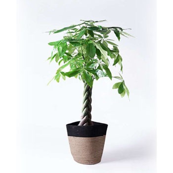 観葉植物 パキラ 8号 ねじり リブバスケットNatural and Black 付き 【贈答用 名入れ】