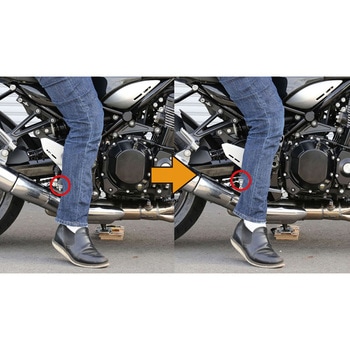専用ブラケットで後方に約20mm移動する事で乗車姿勢を大きく変化させずに停車時の安心感が一気に増大。