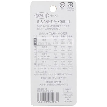 標準タイプの家庭用ミシン針です。9号~16号の4種類展開で用途にあったものをお選びいただけます。