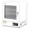 正確な庫内の温度コントロールに。配管・操作がしやすいように、真空ポンプ接続用バルブや真空計を前面操作パネル部分に配置しています。強化ガラス扉と保護用ポリカーボネート製扉の2重扉を採用しています。耐熱シリコンパッキンを使用していますので、耐久性・気密性に優れています。実測値と設定値の確認が容易なPV・SV二段表示に加え、過昇温防止設定温度表示を採用しています。タイマー(4種)、プログラム運転(16ステップ8パターン)を標準装備。温度ロギング(Bluetooth通信)に加えエラー時のAC100V 1A出力を搭載。【ワイヤレスロガーアプリ特長】離れた場所からでも実測温度と設定温度の確認ができます。実測温度と設定温度を一定間隔で基板内のメモリーに記憶します。マニュアル無しでも直観的に操作できます。読み出した記録データは自動的にCSV形式の添付ファイルに変換され、メールアドレスを入れるだけでパソコン等への送信ができ、ファイルはEXCEL等の表計算ソフトで開いて、グラフ化や編集、帳票作成が行なえます。記録したデータを読み出しても、消去するまでは電源をOFFしてもデータは基板内に保持されます。記録の開始/停止、消去はアプリから行ないます。メモリがフルになると記録は自動停止します。