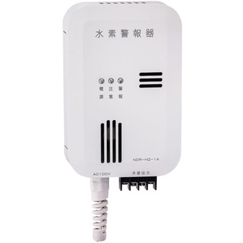 自社製センサを搭載した水素警報器です。500ppmに到達すると、LEDと大音量ブザーで即時に警報を発報します。LEDによる3段階表示(電源・注意・警報)で状態をひと目で確認できます。AC100V電源仕様で、特別な工事が不要。設置が容易です。A接点リレー出力により、外部設備との連動が可能です。壁掛け設置に対応し、省スペースで導入しやすいコンパクト設計です。検査成績書付き。