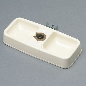 給水皿とエサ皿が一つになった便利な食器です。室内用サークル・ケージに接続して使用できるハンガー付です。市販の500mlペットボトル(外径28mm)を使用します。