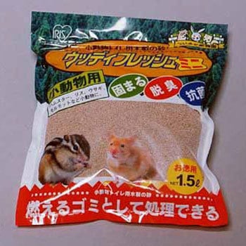 燃えるゴミとして処理ができる固まる・脱臭・抗菌機能を持った木製の小動物用のトイレ砂です。保存に便利なファスナー付きです。