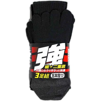 内側シルクの二重底で強くやぶれにくい5本指カカト付ソックス。