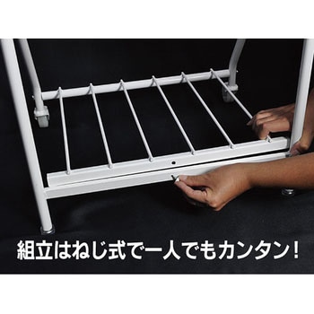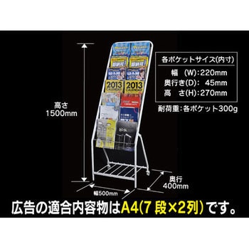 パンフレットスタンドの組立はねじを一カ所とめるだけでOK!お一人でも簡単に組み立てることができます。また、折りたたみ式でコンパクトになるため、展示会等での使用にも適しています。下部にキャスターがついているので簡単に移動できます。