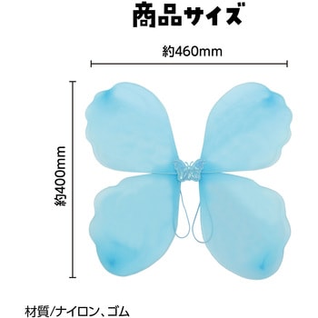 想像より大きくインパクト大です。ハロウィンで妖精のコスチュームに使いました。2歳児が着ると前からも大きく羽が見えかわいいです。羽は柔らかいワイヤーで縁取られていて形は、簡単に変えることができます。