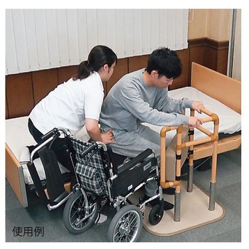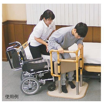 立ち上がり移乗に不安がある方、サポートを必要とする方、立ち上がり移乗の際に前方へ転落落下を心配される方におすすめです。前受け手すりが立ち上がりを容易にし、前方への転倒防止になります。大きなフレームと膝当てが立位を安定させ脱衣介助が楽になります。スライディングボードの併用により、立位が取れないご利用様でもご使用できます。置き型なので任意の場所で使用ができます。