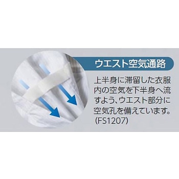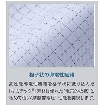 導電糸を格子型に編み込んだ高制電性防塵素材を使用しています。クラス100対応センターファスナー右太腿にアウトポケット付