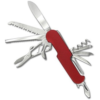 ナイフ・のこぎり・針はずし・うろこ取り・ハサミ・缶切り・コルク抜き・ひも通し・爪掃除・ヤスリ・穴あけ・+ドライバー・-ドライバー・栓抜き