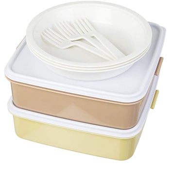 大容量ランチボックスに取り皿とフォークが付いて、これひとつでピクニックもラクラク。