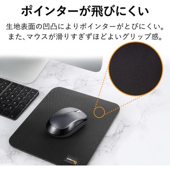 摩耗、引き裂き、擦り切れに強く、高耐久・高強度なCORDURA(R)生地を採用したCORDURA(R)マウスパッドです。 生地表面の凹凸によりポインターが飛びにくく、細かい作業に適しています。 表面はマウスが滑りすぎず、ほどよいグリップ感があり、快適なマウス操作が可能です。 マウス操作の範囲/方向に合わせて、縦向きでも横向きでも使用できるシンプルなデザインです。 マウス操作がしやすいよう大きめにサイズを調整しています。※メーカー従来品MP-112シリーズ面積比1.5倍 BlueLEDマウス、レーザーマウス、光学式マウスなどすべての読み込み形式のマウスに対応しています。裏面にはゴム素材を採用し、マウスを強く動かしてもずれにくく、安定した操作が可能です。