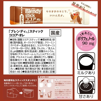 AGF(エージーエフ) 「ブレンディ スティック」 ココアオレ 18本は、お湯だけでクリーミー。ココアとミルクがまろやかに溶け合った、風味豊かなミルクココアの中容量サイズです。1杯1杯がいつも便利な個包装スティックタイプ。