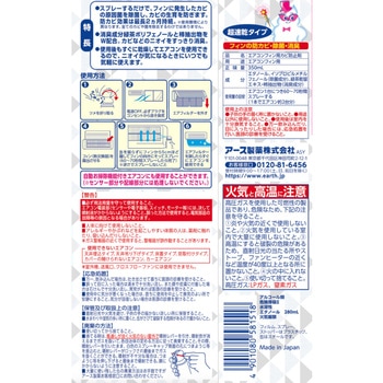 【警告】※必ず用法用量を守って使用すること。エアコン電装部(センサーや電子基板、スイッチ、モーター等)には、決して噴射液がかからないようにすること。誤った方法で使用すると、電気部品の故障等の原因となる場合があります。